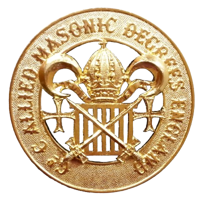 Description: Allied Masonic Degrees Grand Collar Jewel, a striking gold-coloured metal pendant that adds a distinguished touch to any Masonic attire.