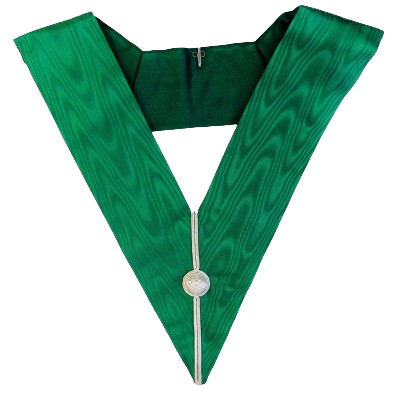 Description: Allied Masonic Degrees District Collar, 4-inch wide green ribbon, complemented by a silver-coloured braid.