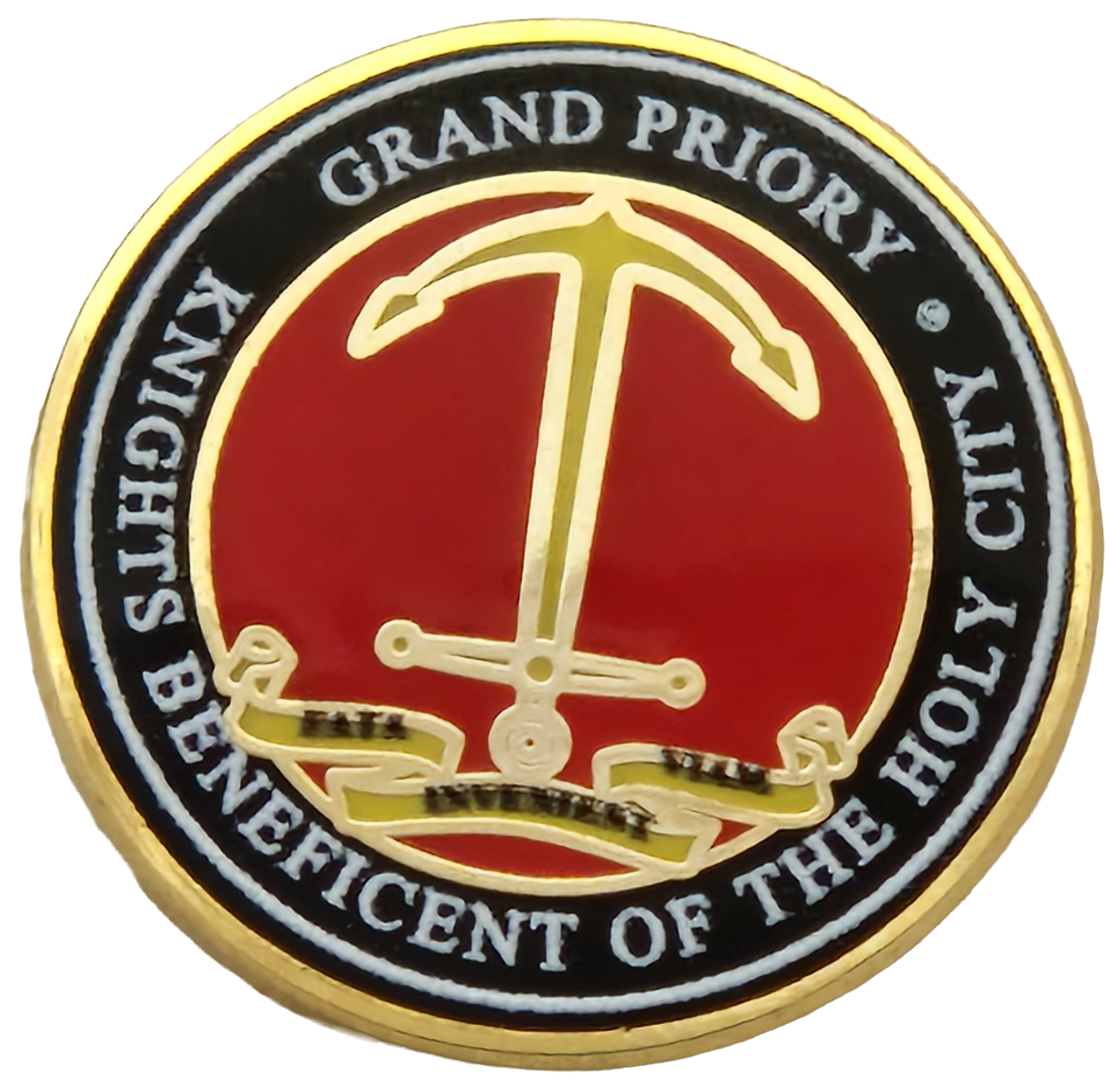 Pin featuring the Grand Priory Knights Beneficent of the Holy City Logo. This is the official Pin of the Order